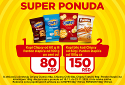 Nećete pogrešiti sa Chipsy Klasik 60g ili Chipsy rebrasti, u kombinaciji sa Pardon slanim štapićima. Nabavite oba po odličnoj ceni u našim prodavnicama, pojedinačno ili u paru!