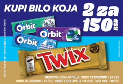Počastite se Snickers i Mars čokoladicom, uživajte u jedinstvenom ukusu ovih slatkiša. Kupite na našim kioscima dve čokoladice, dva puta više zadovoljstva, po jedinstvenoj ceni.