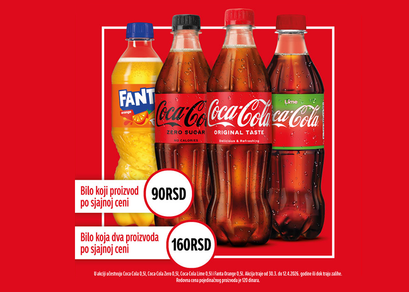 Iskoristite priliku. Iskombinujte vaše omiljene napitke Coca-Cola Original, Lime ili Zero sa Fanta Orange. Kupite bilo koji od navedenih proizvoda u flašici 0,5L za 90 rsd ili bilo koja dva za 150RSD.