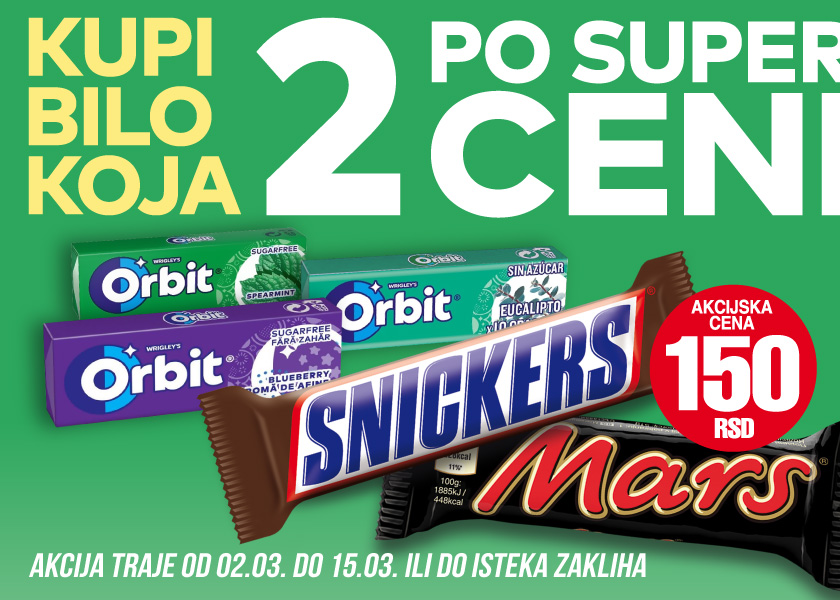 Napunite baterije, zasladite se omiljenim čokoladicama. Uživajte u neodoljivom spoju kremastog punjenja i hrskavog keksa i najfinijeg mlečnog čokoladnog preliva, za blistav osmeh i svež dah Orbit žvake su uvek odličan izbor.