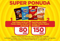 Nećete pogrešiti sa Chipsy Klasik 60g ili Chipsy rebrasti, u kombinaciji sa Pardon slanim štapićima. Nabavite oba po odličnoj ceni u našim prodavnicama, pojedinačno ili u paru!