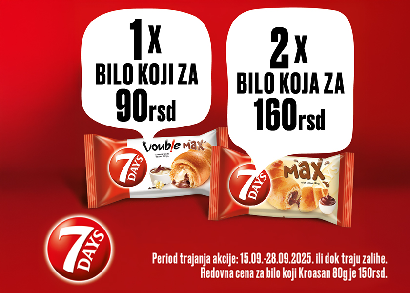Experience the pleasure of the creamy taste of chocolate and vanilla and the foamy dough of 7DAYS croissants. Now on sale at a special price.