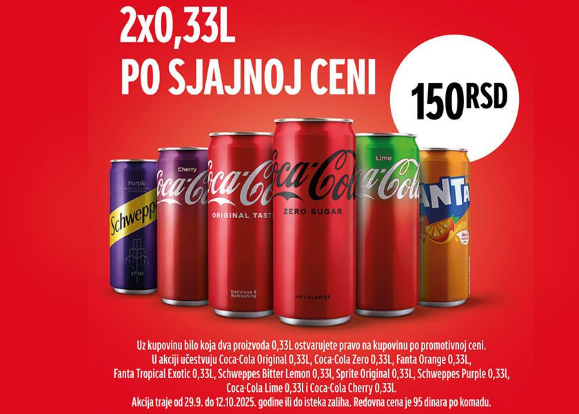 Seize the chance to combine your favourite Coca-Cola, Fanta or Schweppes flavours. Buy two 0.5L bottles of any listed products on this special offer, and get them both for 150 dinars.