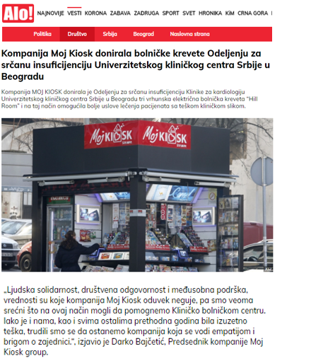"Human solidarity, social responsibility and mutual support are values that the company Moj Kiosk has always nurtured, so we are very happy that we were able to help the Clinical Hospital Center in this way. Although the previous year was extremely difficult for us, as well as for everyone else, we tried to remain a company that is guided by empathy and care for the community, "said Darko Bajčetić, President of the company Moj Kiosk Group.