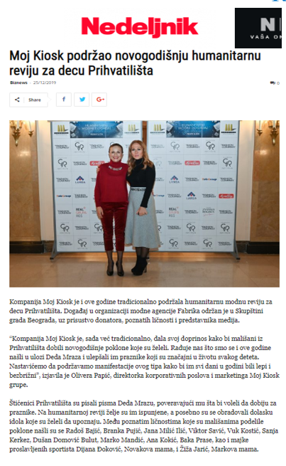 Moj Kiosk Company has traditionally supported the humanitarian fashion show for children from the shelter this year as well ...