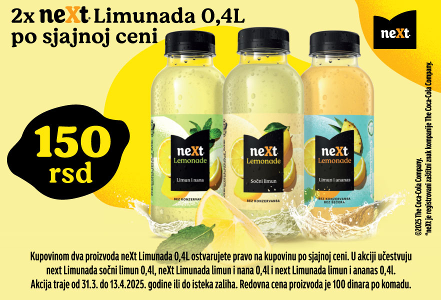 Buy any two tastes of Next lemonade 0,4L, and get both products for 140 rsd.