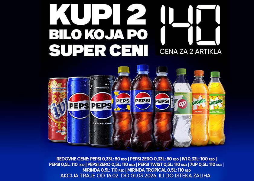 It's time to refresh yourself with a Pepsi, it can be original or full-flavoured with zero sugar! For lovers of fruity flavours, we have Ivi - peach, Mirinda or 7up. Take advantage of this opportunity and try various combinations at a great price!