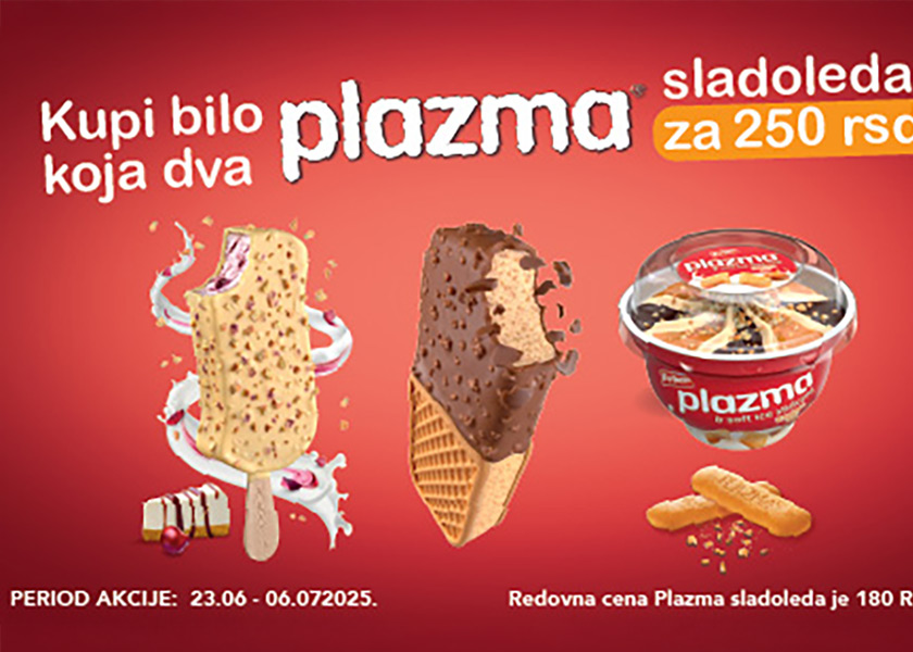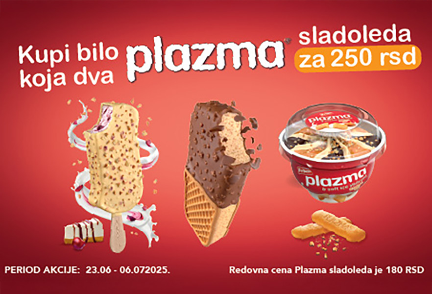 Double the pleasure for less money. PLazma ice creams are now at a great price at our kiosks. Now, you can buy two for 250 rsd.