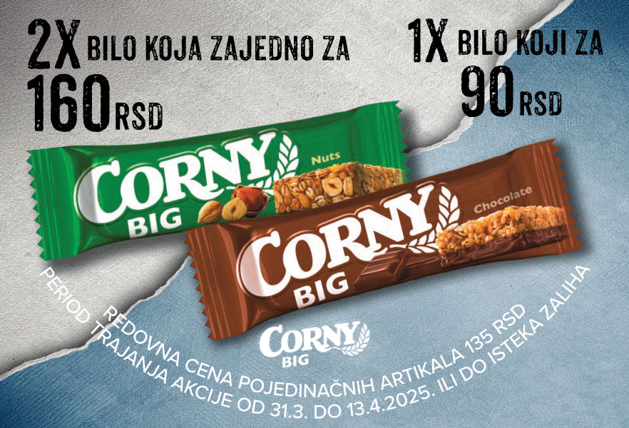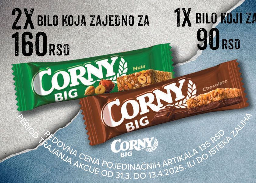 Corny Big is the perfect combination of taste and energy that stays with you longer. Two doses for a complete "recharge", now at our kiosks at an extra price.