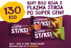 For a quick snack, extra energy, and a daily dose of optimism, try Plazma Biscuits and Plasma Choco Drops. Look for a special offer at the Moj kiosk objects: buy any two for 150 dinars.